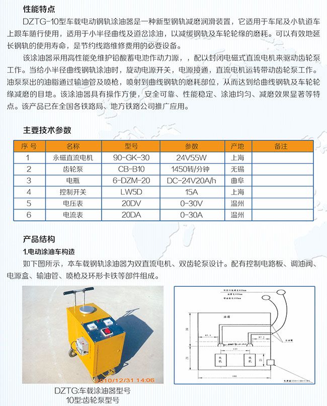 | 上一條:DZTG-16型車(chē)載電動(dòng)鋼軌涂油車(chē) | 下一條:DTTY-50/60型地鐵自動(dòng)涂油器 |